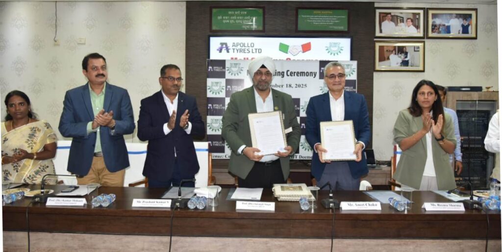 Bhubaneswar : In a pioneering move for the Indian automotive and education sectors, Apollo Tyres Ltd and Kalinga Institute of Industrial Technology (KIIT), Bhubaneshwar today announced a first-of-its-kind strategic association to introduce a specialised elective/module on Tyre Technology for engineering students.