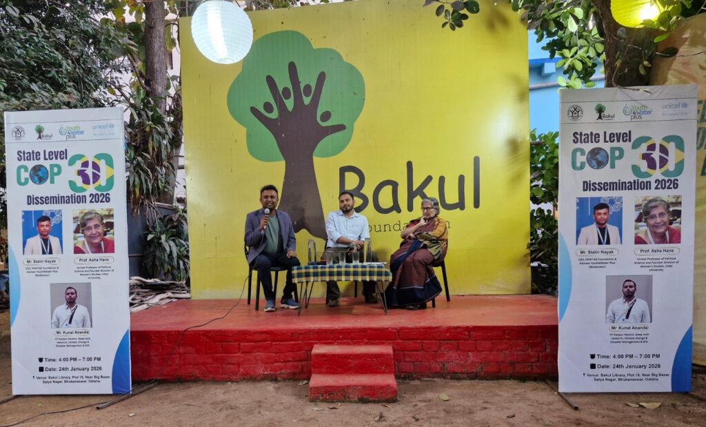 Bhubaneswar, January 24, 2025: To bridge the gap between global climate policy and local action, Youth4Water Plus, with the support from UNICEF Odisha, organized a state-level dissemination meeting today at the BAKUL Library, Bhubaneswar. The event focused on sharing important takeaways and firsthand experiences from the COP30 conference held in Belem, Brazil, in 2025.