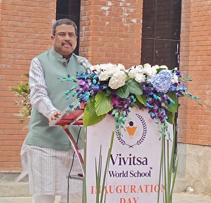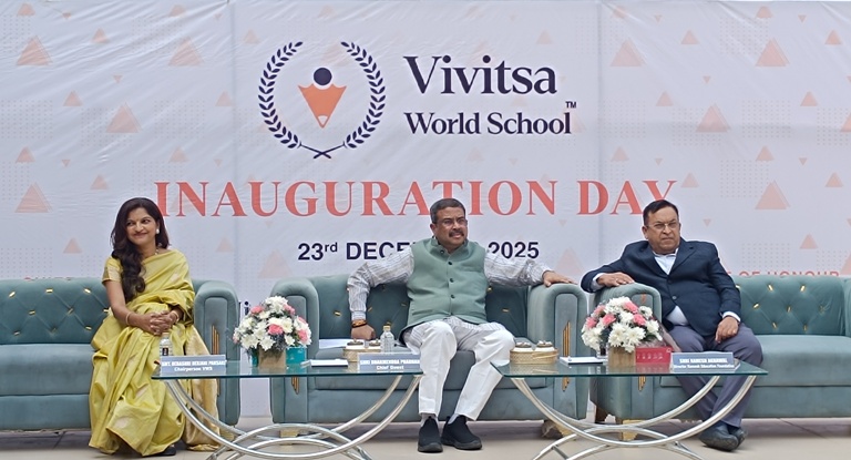 Sambalpur: Vivitsa World School was formally launched today at Bhalukunda, Sambalpur, marking the beginning of a new educational institution committed to nurturing academically strong and value-driven learners in the region. The inauguration ceremony was graced by Shri Dharmendra Pradhan, Honourable Union Minister of Education and Member of Parliament, Sambalpur, who attended as the Chief Guest . The dignitaries jointly inaugurated the school campus by cutting the ceremonial ribbon.